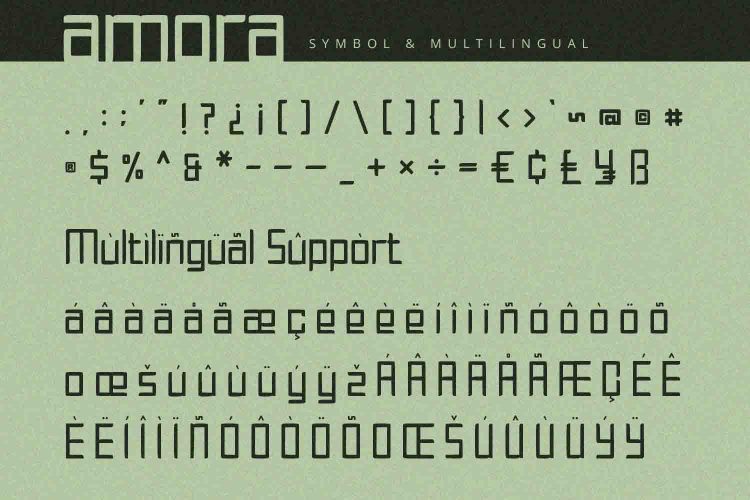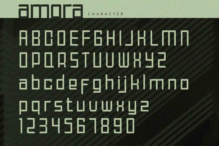 Amora is bold display font with modern and futuristic feels. It will be perfectly used for Branding, Logo Design, Lettering, Logotype, Clothing, Poster, magazine, packaging, posters, shopping bags, t-shirts, book covers, photography, special events and other design project.