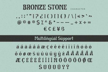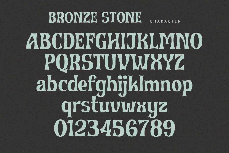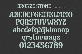 Bronze Stone is serif font with elegant and classic feels. It will be perfectly used for Branding, Logo Design, Lettering, Logotype, Clothing, Poster, magazine, packaging, posters, shopping bags, t-shirts, book covers, photography, special events and other design project.
