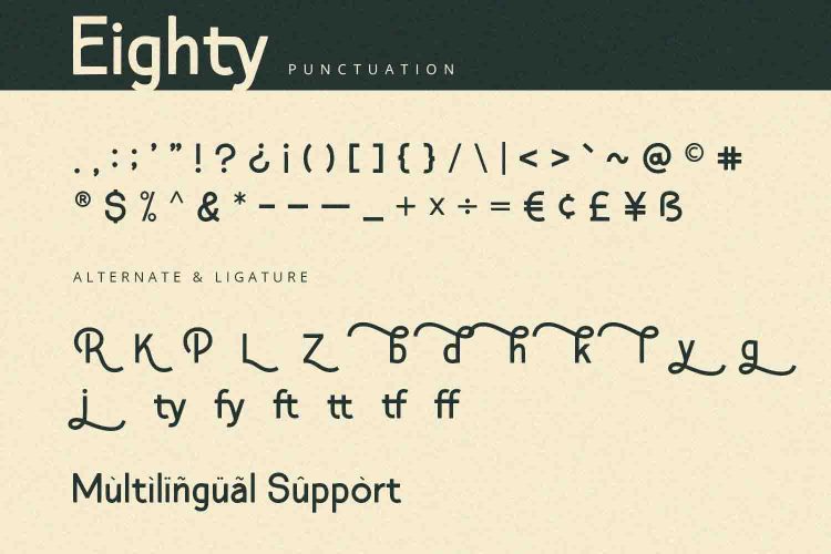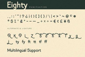 Eighty is sans serif font with elegant and modern feels. It will be perfectly used for Branding, Logo Design, Lettering, Logotype, Clothing, Poster, magazine, packaging, posters, shopping bags, t-shirts, book covers, photography, special events and other design project.