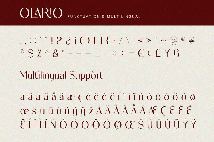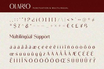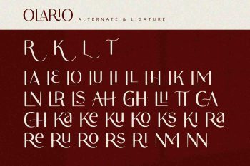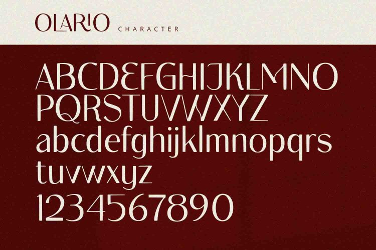 Olario is a sans serif font with elegant and modern feels. It will be perfectly used for Branding, Logo Design, Lettering, Logotype, Clothing, Poster, magazine, packaging, posters, shopping bags, t-shirts, book covers, photography, special events and other design project.